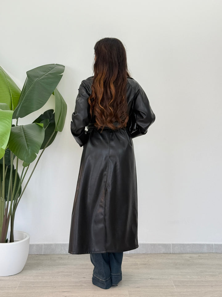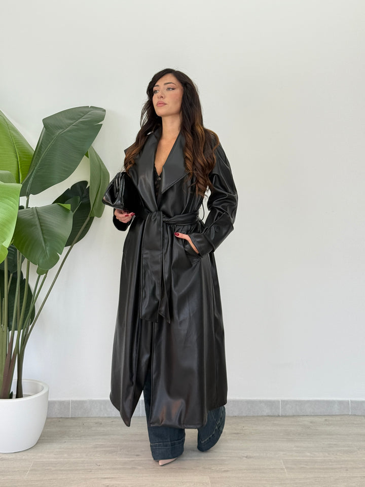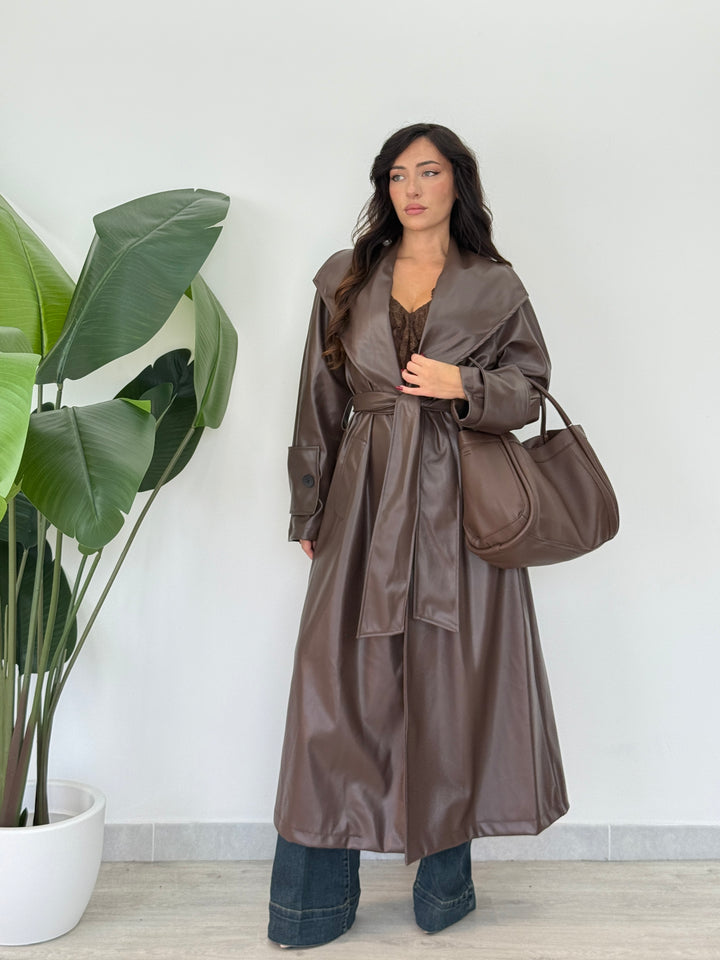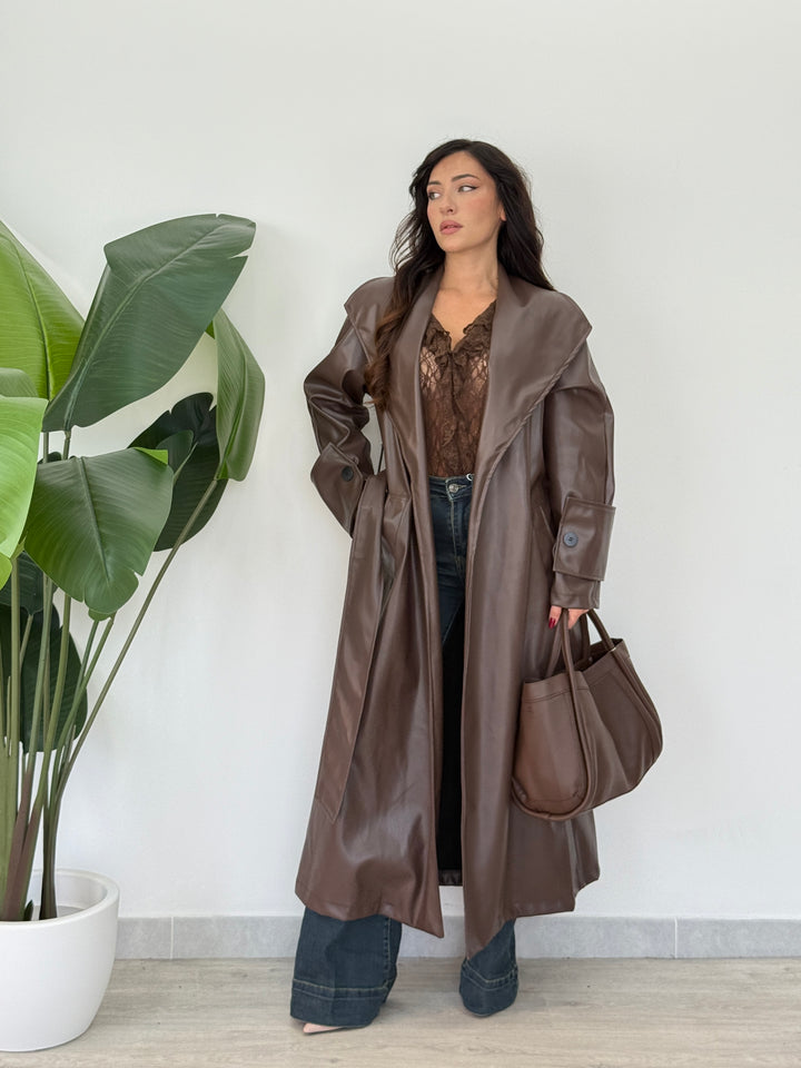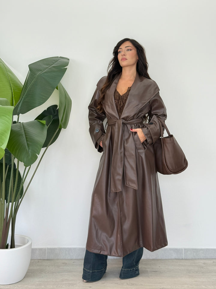 Capo intramontabile,il trench in similpelle donna è un must have. Adatto a tutti gli outfit, perfetto con un vestito come anche con un pantalone . Non foderato all’ interno. Vestibilità semiover .