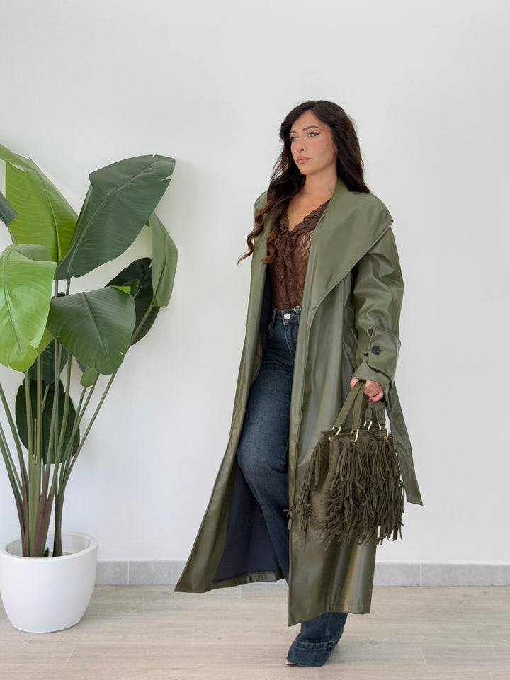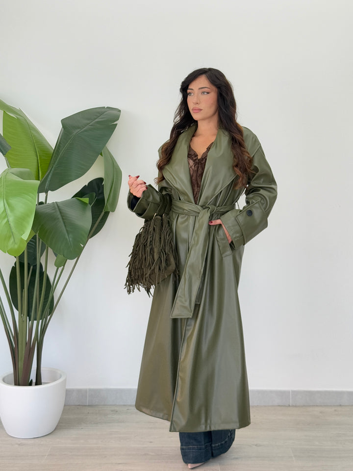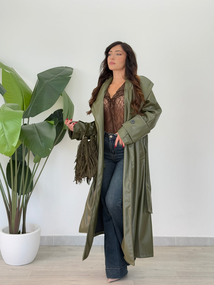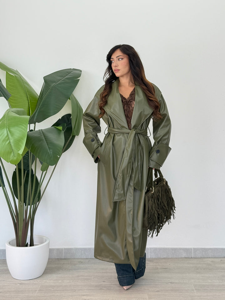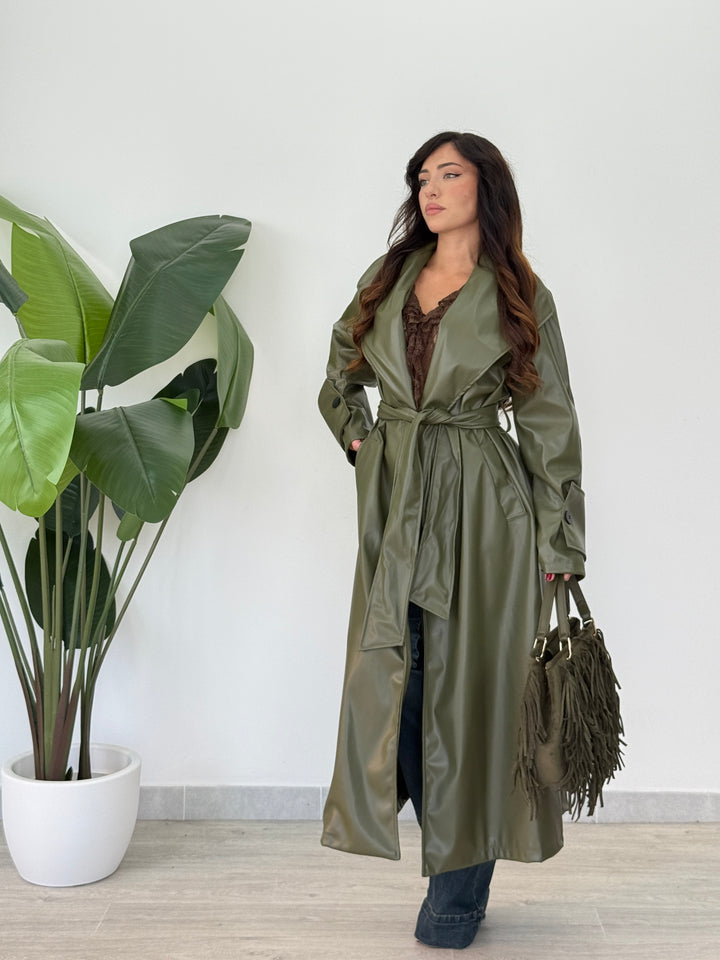Capo intramontabile,il trench in similpelle donna è un must have. Adatto a tutti gli outfit, perfetto con un vestito come anche con un pantalone . Non foderato all’ interno. Vestibilità semiover .